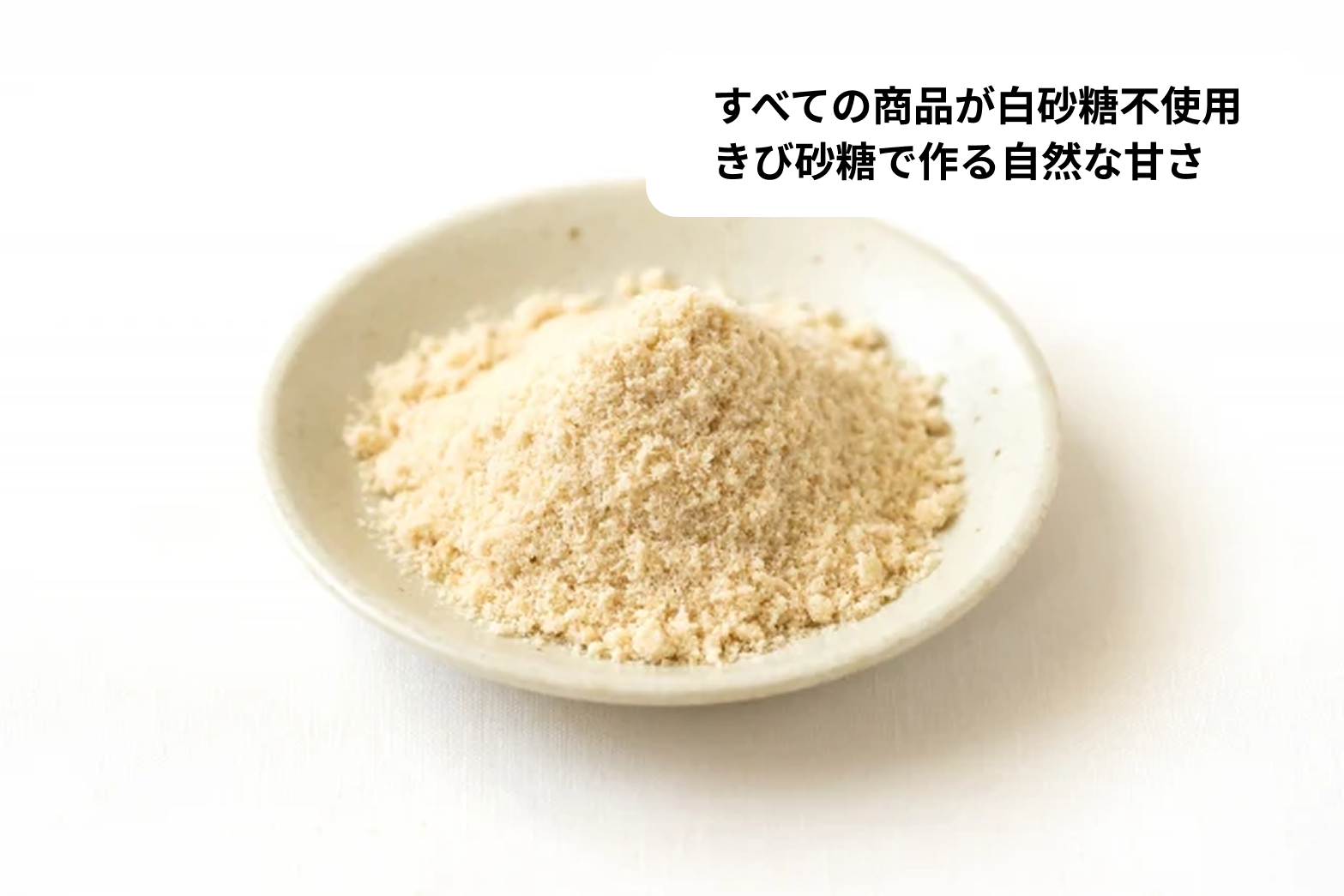 当店の米粉食パンは、全メニュー白砂糖不使用。健康への影響が懸念される精製糖を一切使わず、体に優しい自然派食パンを実現しました。